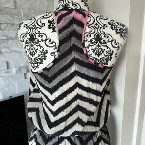 Parker Chevron Print Satin Long Maxi Dress Grey Pink Black S