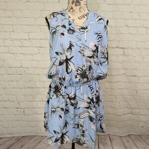 Parker Faux Wrap Blue Floral Dress SIZE: L 100% polyester new with tags - smoke free