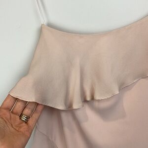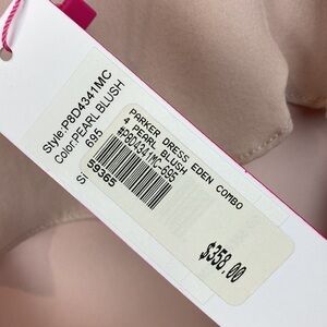 New with tags, there is a makeup smudge inside the dress as well as a small snag on the silk under the shoulder sash. Both pictured.