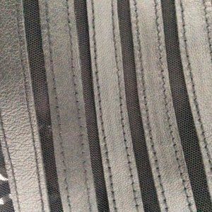 - Key Leather & Mesh Dress Supple strips of luxurious leather create sleek stripes against sheer mesh in a knockout fit-and-flare silhouette.