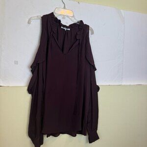 Parker Marjorie Silk Ruffles Boho Balloon Sleeves Shoulder Blouse Top V Neck S