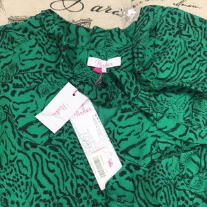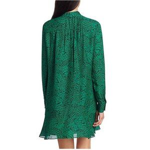 Make a chic statement in this animal-print shift designed with a polished tie neck and frilly hem.
