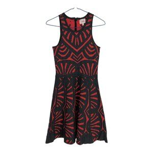 Parker Red and Black Tribal Sleeveless Fit & Flare Clarence Dress XS