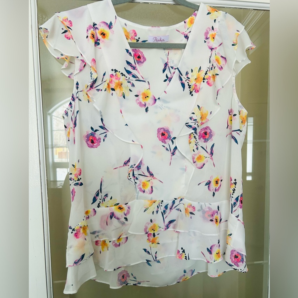 Beautiful floral ruffle top by Parker