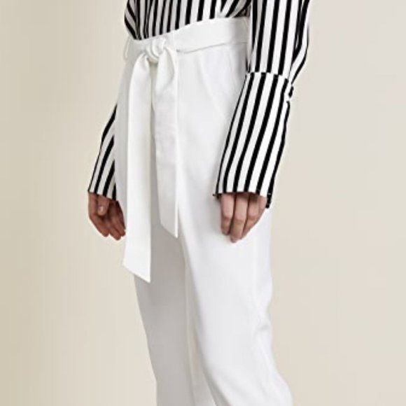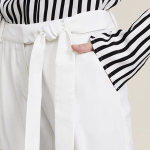 Easily go from the office to after-hours in this pair of Parker pants. These high waist pants have a tie at the waist, making them look slim and flattering.