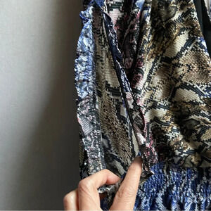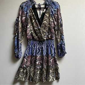 Parker Silk Tiered Blue Gladis Snakeskin Print Mini Dress Size XS