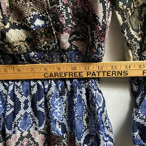 Parker Silk Tiered Blue Gladis Snakeskin Print Mini Dress Size XS