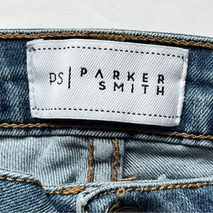 Parker Smith Skinny Jean Medium Blue Wash Whiskering Denim Raw Hem Sz 28 *Flaw