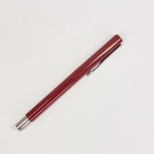 Authentic Parker Vector fountain pen in red, made in the USA. Medium stainless-steel nib writes cleanly and evenly. Tested — ink flows smoothly.