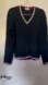 Parker of Vienna Black V-Neck Sweater with Red and White Trim