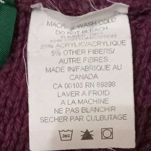 70 % cotton, 25 % acrylic, and 5% other fibers made and fabricated in Canada.