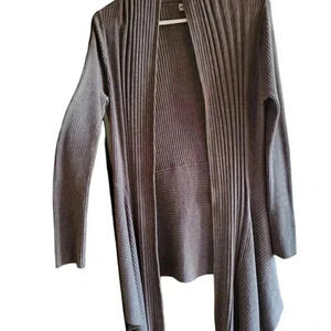 Waterfall open front cardigan in Grey ribbed knit light weight cotton & acrylic .says small but may be s-m check the measurements