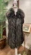 • Black puffer vest with dramatic faux-fur collar + long faux-fur front panel