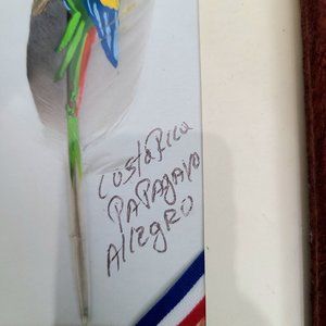 8.5'' x 4.5''. In wooden frame, covered with glass. Great condition.