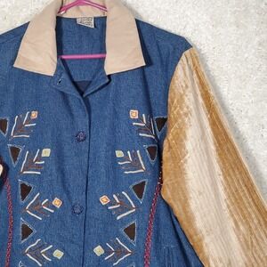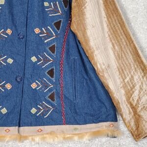 Parsley And Sage Women Denim Beaded Jacket Size XL Southwestern Boho Art To Wear