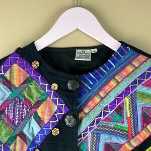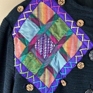 Parsley and sage, make such cute and unique pieces. This cardigan sweater has unique detailed buttons denim pocket with texture and quilting patterns throughout. Pattern continues on back.