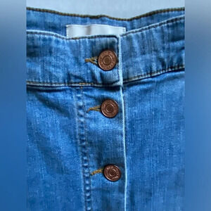 Part Two 5 pocket Jean button skirt Sz 44 Please review pictures for condition and measurements.