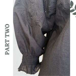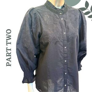 Part Two Black Statement Blouse | Eyelet Embroidered Puff Sleeve Shirt Size 8