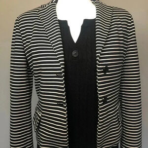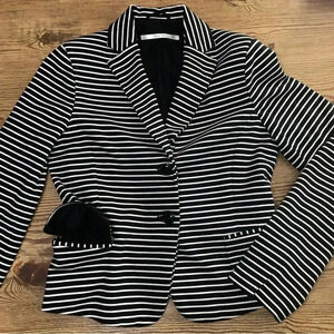 Excellent condition! No signs of wear. Classic cotton blend black and white stripe with 2 button closure. Black polyester lining. Fabric tag removed. UK brand.