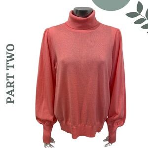 Part Two Elegant Balloon Sleeve Turtleneck Lightweight Wool Sweater Size XL
