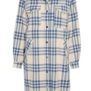 Part Two Kirstens Jacket Dutch Blue & Off White Size 40. Armpit to armpit measures approx. 23 inches and it is approx. 40 inched from should to hem. It has snap closures. There is a slight perfume smell on the jacket. Nice pre owned condition.