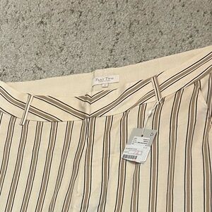 Part Two NWT size 12 (42) These stylish pants feature a classic cream and black stripe pattern, perfect for adding a touch of sophistication to any outfit. The boot cut and flare design provides a flattering fit, making them suitable for both casual and dressier occasions. Crafted from lightweight fabric, they ensure comfort and effortless elegance.