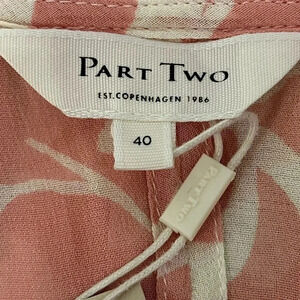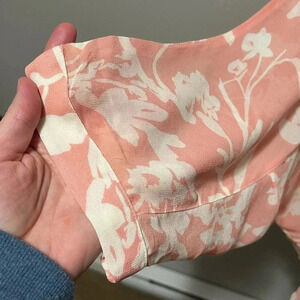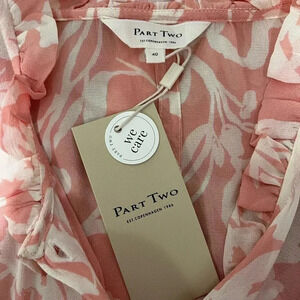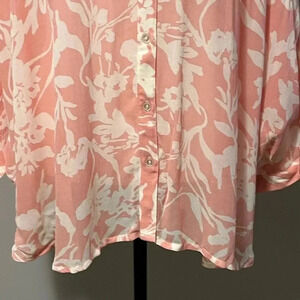 New. Blush pink with creamy white floral pattern. Full button down. Ruffled collar. Dolman style sleeves. Loose fit style. Slightly sheer.