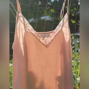 Indulge in the soft elegance of this blush chemise, adorned with delicate lace trim. Ideal for a relaxing evening or a night out on the town. 🌹