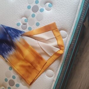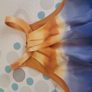 Absolutely stunning party/wedding dress. colors are Absolutely beautiful, and cut is perfect. Dress has a slit in the back.