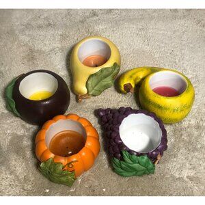 Enhance ambiance with this Partylite set featuring fruit and pumpkin tealight holders. Ideal for adding a decorative touch to your space.