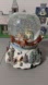 The base of the snow globe depicts a snow-covered village scene with a sign pointing to "NORTH POLE".