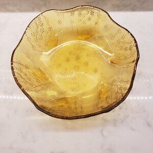 Pasabahce Vintage Amber Glass Bowl that has Embossed Flowers & Scalloped
