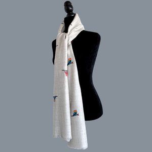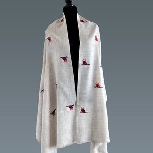 This wool wrap/shawl is woven with cute owls in different colors. Each piece is a unique work of art and is made by skilled artisans and conveys its own story.