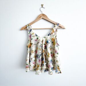 Passport Floral Tank Self-Lined V-Neck Front and Back, Women's S. Polyester. Flowy. Two layers of the same sheer fabric make this a pretty top without being too see-through. Very good used condition. Please see photos for approximate measurements.