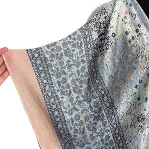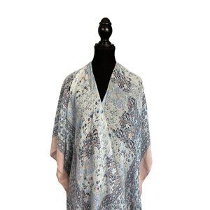 Add a touch of effortless elegance to your wardrobe with this stunning pastel floral kimono shawl. Featuring an intricate print in soothing sky blue and soft blush pink tones, this flowy piece brings both Parisian charm and boho sophistication to any outfit.