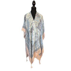 boho kimono, floral shawl, pastel blue wrap, lightweight scarf, summer cover-up, resortwear, bohemian style, tassel kimono, feminine layers, spring fashion, french girl style, clean girl aesthetic, minimalist wrap, neutral tones, travel shawl, beach kimono, european summer, elegant layering, timeless style, breathable fabric, open front kimono, flowy shawl, soft pink tones, casual chic, versatile accessory, boho chic, modern feminine, effortless style, layering piece, festival fashion, soft floral print