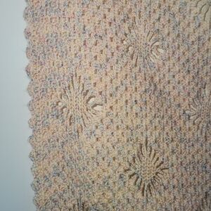 Large Ombre Pink Yellow Blue & Cream Crochet handknit "Rainbow Dust" Baby Blanket Throw with Scallop Trim.