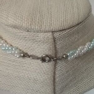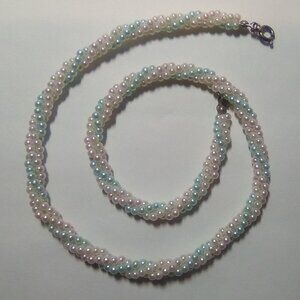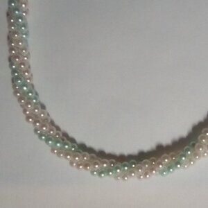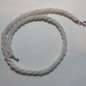 Pastel Faux Pearl Choker Necklace - 3 Strand Twisted Tiny Beads - 17" Long