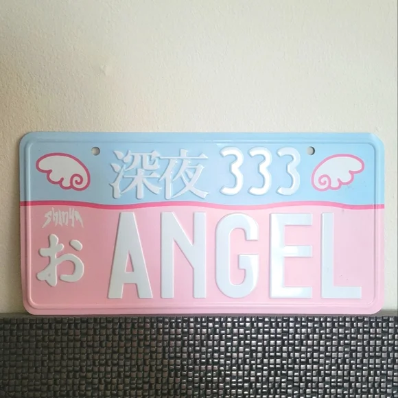 Decorative license plate with 'Night Angel' text. Features pastel blue and pink colors.