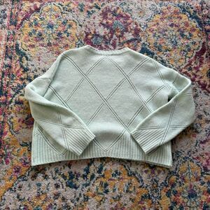 A beautiful pastel mint sweater made in Italy by Bartolini, crafted in a soft wool–acrylic blend that feels cozy and warm without being heavy. It has a subtle cropped fit, delicate diamond knit pattern and a really flattering shape that pairs perfectly with denim or dressier trousers.