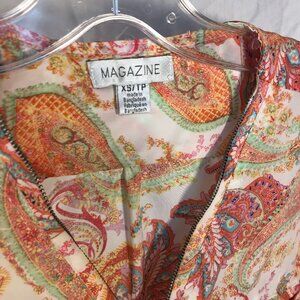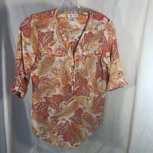 Magazine brand pastel paisley roll-sleeve top with buttons on sleeve. size xs