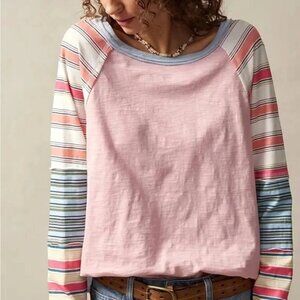 Pastel Pink & Blue Multicolour Striped T-Shirt Top