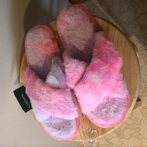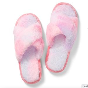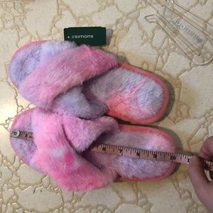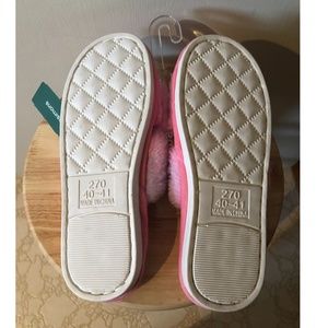 Pastel faux fur crossed slide slippers new with tags. Padded cushiony insoles, textured rubber outsoles. Very cute and cozy, perfect for a gift. Marked size EU40-41 but fit smaller imo. Insole is a little over 10’’, so it would fit like a size 9-9.5. This item comes from a smoke free, pets friendly home. Recycled bags/box used when possible. Please, let me know if you'd like any additional pictures and/or measurements or other info. Thanks for watching!