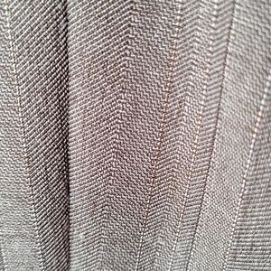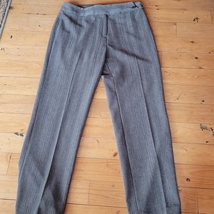 High-quality women's suit. Modern and timeless, this suit is a pale grayish olive green, with a thin gold pinstripe which probably can't be made out in the pictures