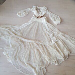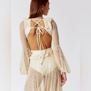 PatBO ! Netted Long Sleeve Fringe Beach Dress in Ivory ( Small )