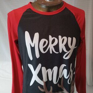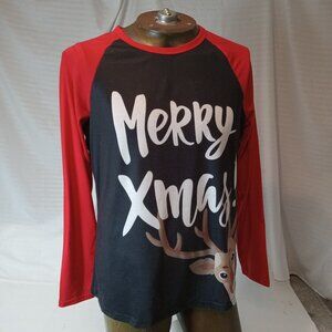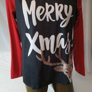 PatPat Christmas Reindeer Plaid Raglan Shirt Women’s Large Long Sleeve Holiday