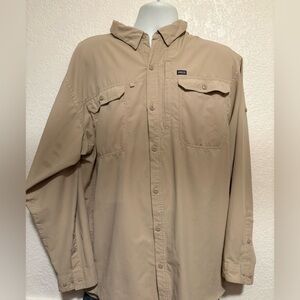 Patagonia, NWOT 'common threads recycling program’. Inner lined Buttoned Long-sleeved. 100% polyester (rain resistant) OBO
