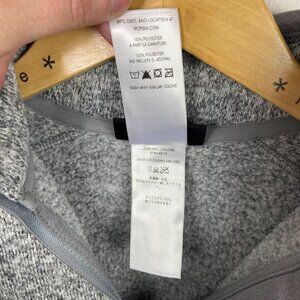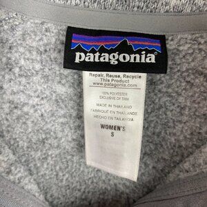 Patagonia Better Sweater Quarter Zip Performance in Birch White (or Heathered Grey) and Women's Size Small. Made from ultra cozy fleece fabric and dyed using low-impact process that reduces the use of water, energy and dye. 100% recycled polyester fleece. Slim fit. Quarter zip closure. Hip length. Zippered security pocket. Micropolyester jersey trim on cuffs, wind flap and hem. Very good pre-loved condition. No visible flaws but note the is a patch for Breckenridge on the sleeve.