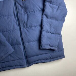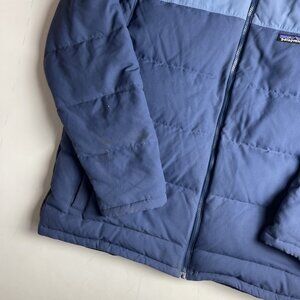 Patagonia Bivy Goose Down Jacket Quilted Puffer Mens XXL Blue Stained, read