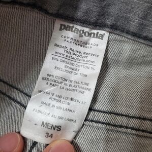 Patagonia Iron Clad Denim 100% organic cotton. Light grey. Men size 34. 30" inseam. Dewashed style. Gentle signs of wear along the seams as seen on pictures (mostly on the back pockets and front zipper area). Excellent condition. No stain, no rip. Non smoking house.